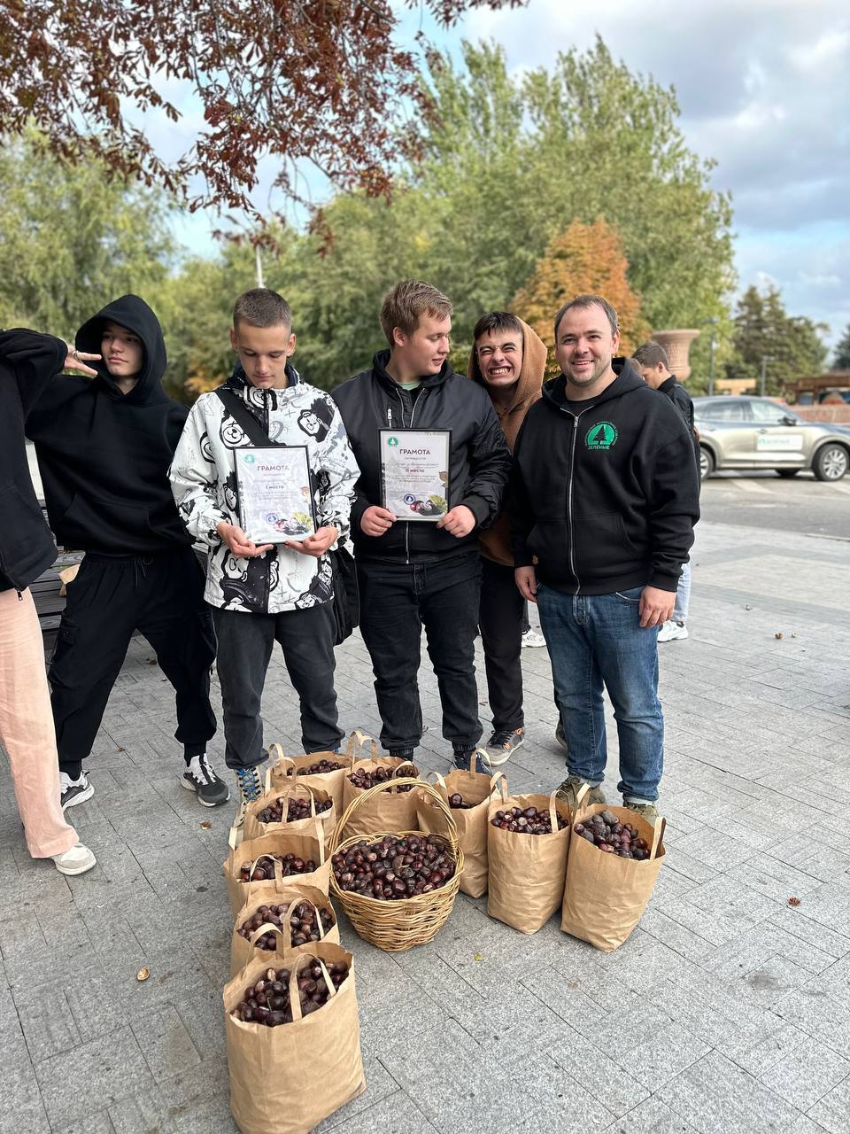 Несколько часов посвятив прогулке по Аллее Героев и Центральной набережной волгоградские «ЗЕЛЁНЫЕ» собрали целых пять мешков каштанов.
